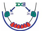 Prirodni zubi nosači mosta bruse se kao za klasični most, a zub koji nedostaje kao nosač, nadoknađuje se ZX-27 staklenim potpornjem.